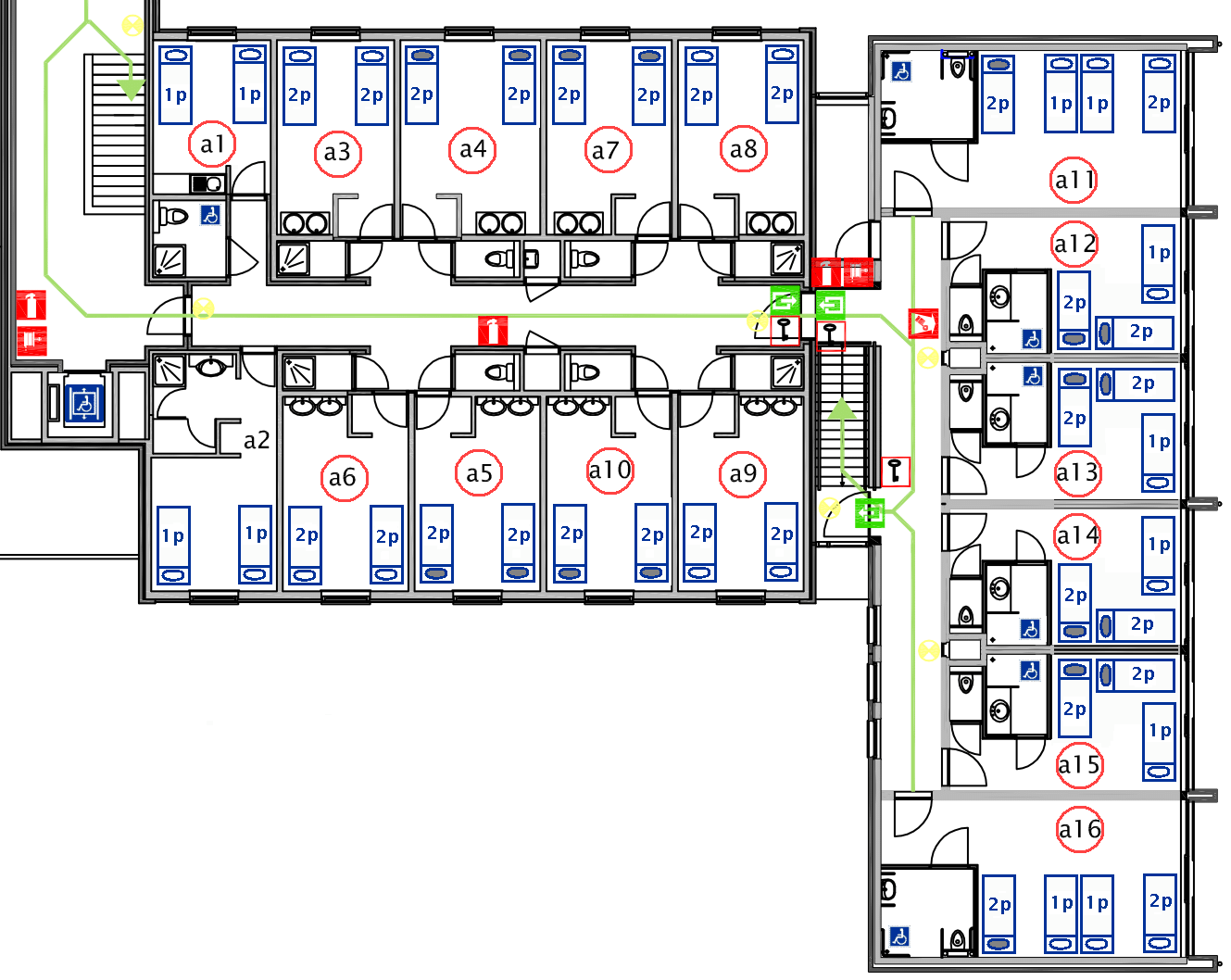 • Slaapvleugel A heeft 16 kamers met 68 bedden.