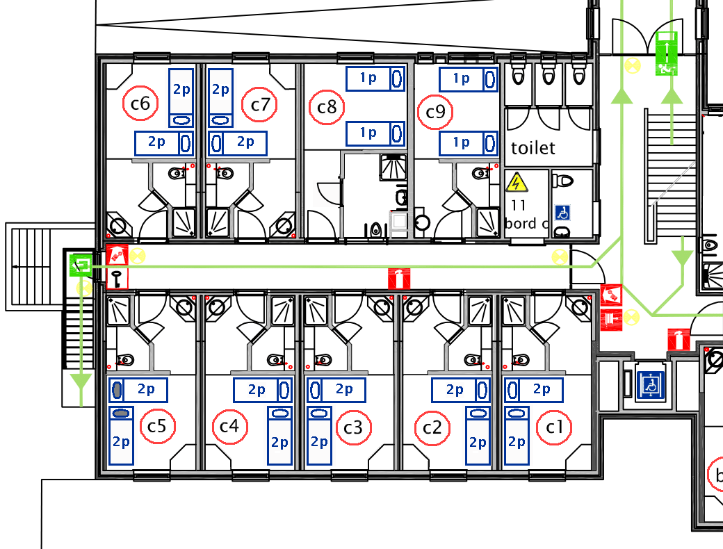 • Slaapvleugel C heeft 9 kamers met 32 bedden.